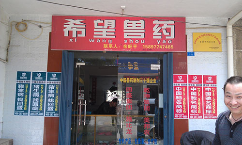 不知不覺一路貼到陳河鎮(zhèn)上,大家加快了進(jìn)度,沒多久,古鎮(zhèn)主街道兩側(cè)的電線桿上就貼滿了回盛的品牌宣傳畫。我們驚喜的發(fā)現(xiàn),鎮(zhèn)上一家希望獸藥店,在店門口醒目的位置還打出了“回盛股份新華星動保連鎖獸藥應(yīng)城銷量第一”的標(biāo)語。老板談起銷售業(yè)績一臉歡喜,看得出來回盛旗下的產(chǎn)品在鎮(zhèn)上比較暢銷,市場占有率很高。