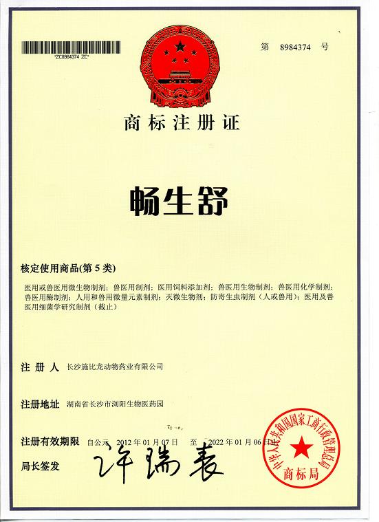 暢生舒商標(biāo)注冊證
