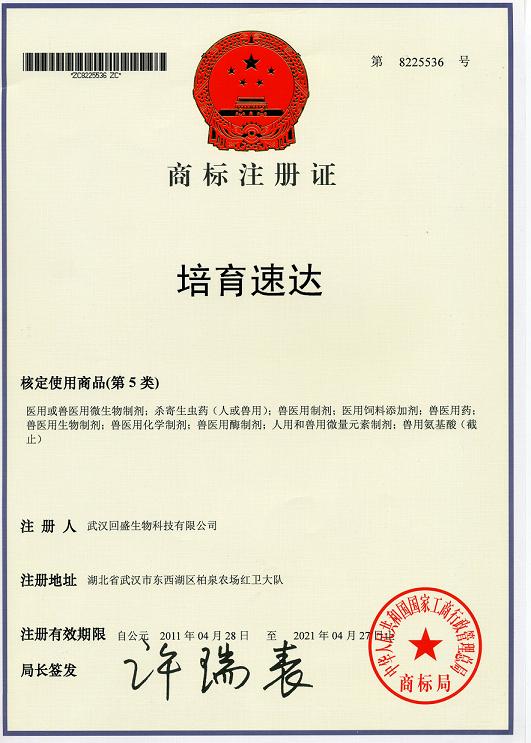 培育速達(dá)商標(biāo)注冊(cè)證