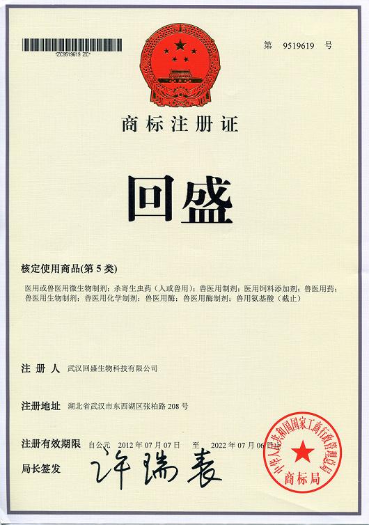 回盛商標(biāo)證書